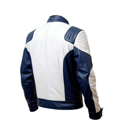Men’s White And Blue Sheepskin Leather Biker Jacket