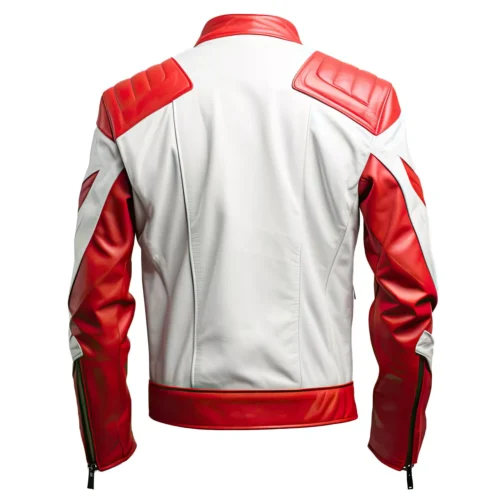 Men’s Red And White Genuine Sheepskin Quilted Biker Leather Jacket