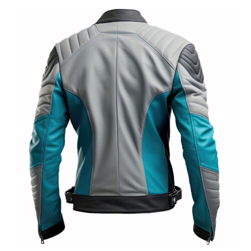 Men’s Turquoise Blue & Black Sheepskin Slim-Fit Quilted Biker Leather Jacket