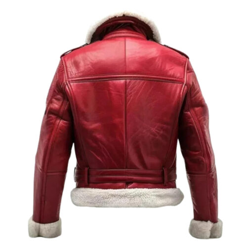 Men’s Red Shearling Christmas Fur Leather Jacket – Classic Aviator Biker Style