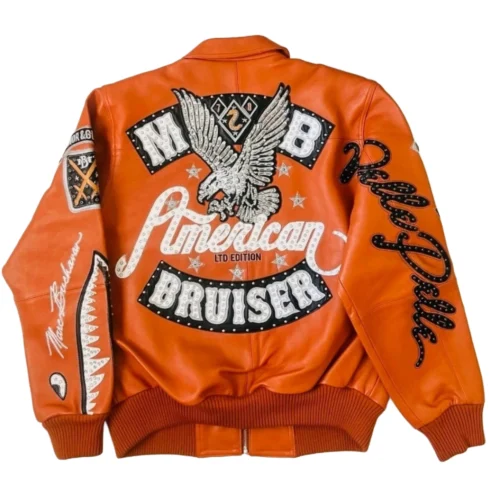 Men’s Orange Bomber Leather Jacket – Stylish Fashion
