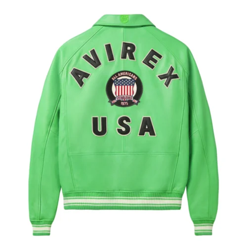 Men’s Premium Varsity Lime Green Bomber Leather Jacket