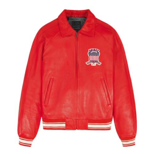 Men’s Premium Varsity Red Bomber Leather Jacket
