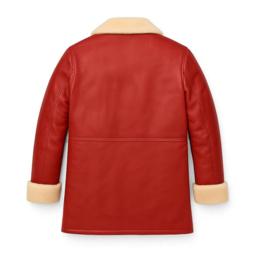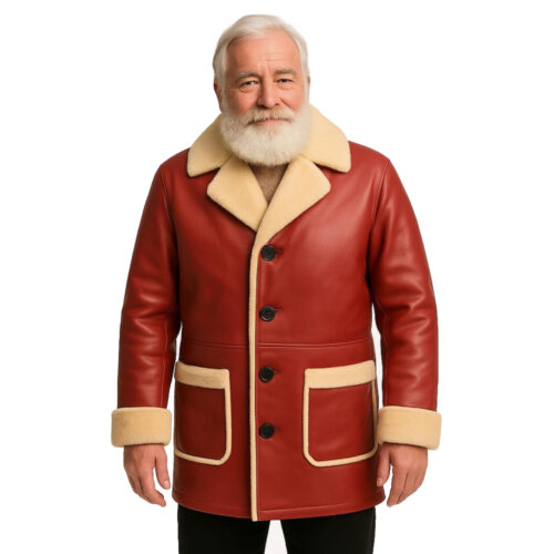 Men’s Christmas Red Shearling Leather Winter Coat