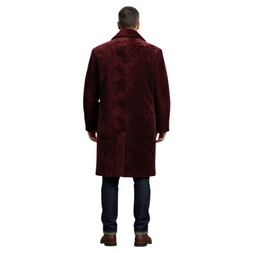 Men’s Red Wine Velvet Overcoat – Chenille Long Winter Coat