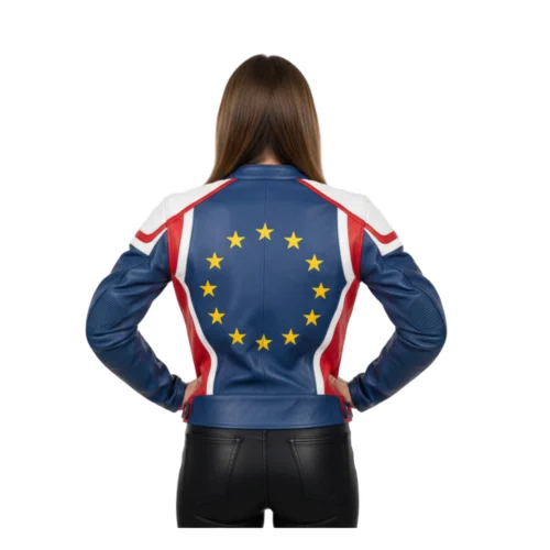 Women’s Europe Flag Biker Leather Jacket – Stylish Fashion