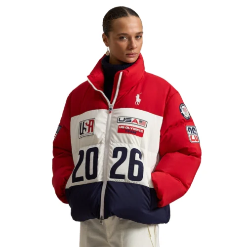Women’s Olympic Winter Games Puffer Jacket Red / White / Navy