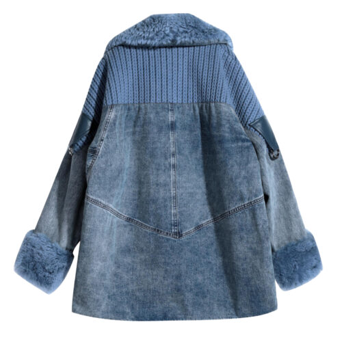 Women’s Oversized Denim Shearling Coat – Knit & Faux Fur