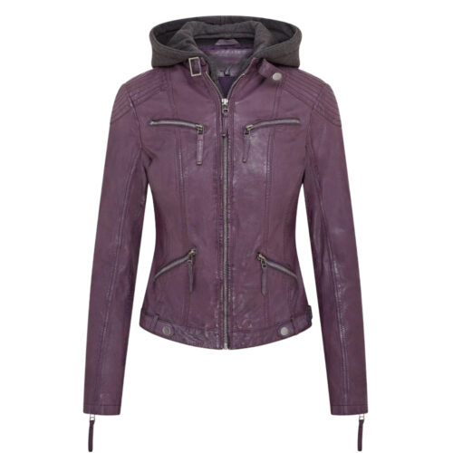 Women’s Plum Purple Faux Leather Hooded Biker Jacket