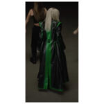 American Singer Women’s-Inspired Long Leather Coat – Black With Green Line