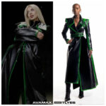 Make a bold statement with this American Singer Women’s-Inspired Long Leather Coat, featuring a sleek black design with striking green line accents. Crafted from 100% genuine leather, this stylish and edgy coat blends celebrity fashion with contemporary street style, making it a must-have for trendsetters. The long-length silhouette exudes confidence and sophistication, perfect for turning heads wherever you go.