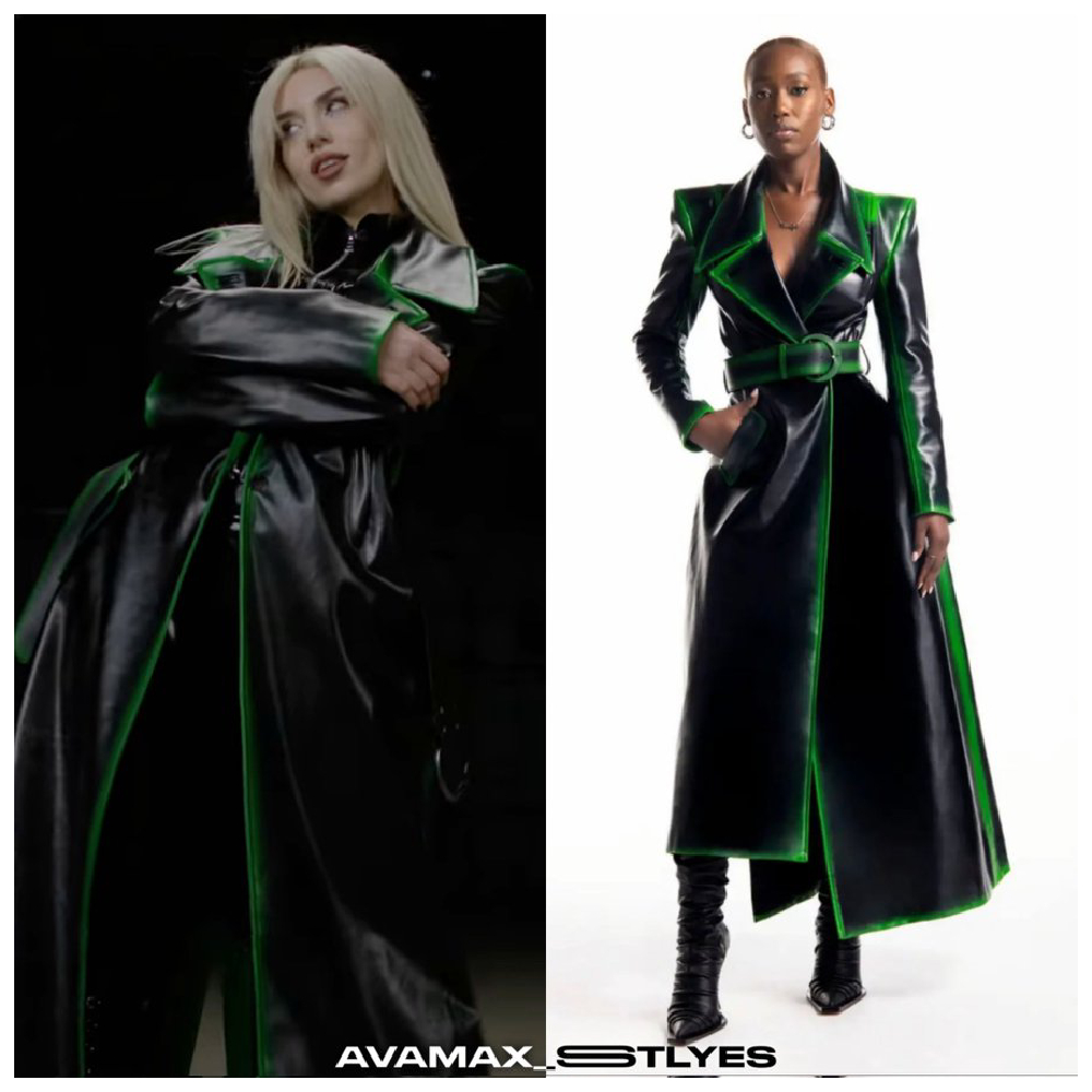 Step into the spotlight with the American Singer-Inspired Long Leather Coat – Black with Green Line, designed for those who love to stand out with confidence and style!