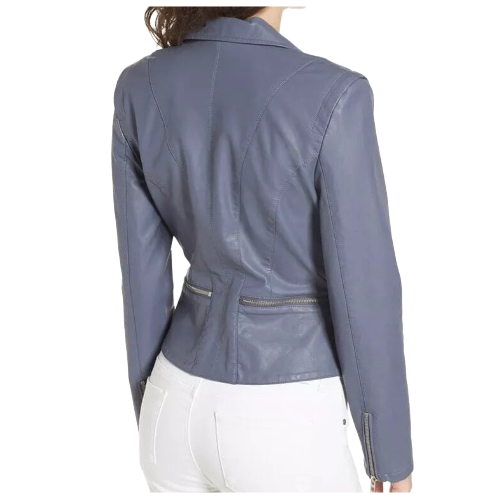✔ Closure: Asymmetrical Front Zipper – Classic biker style