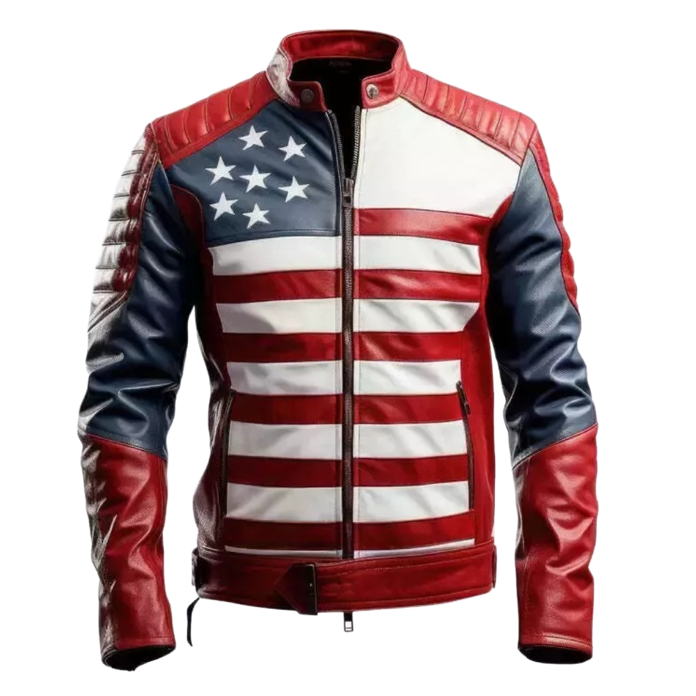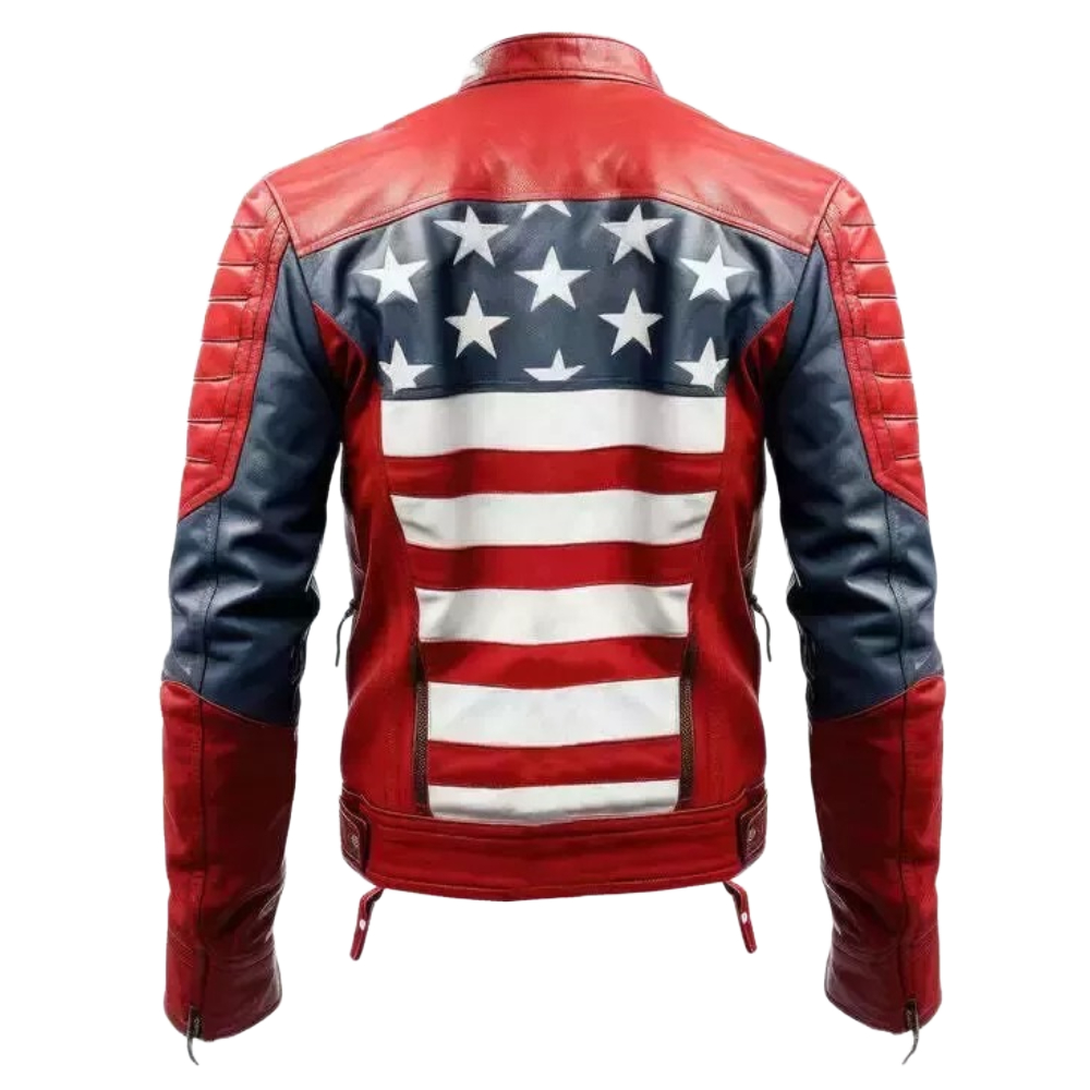Handmade Men’s Premium Leather USA Flag Jacket – Motorbike Racer Style