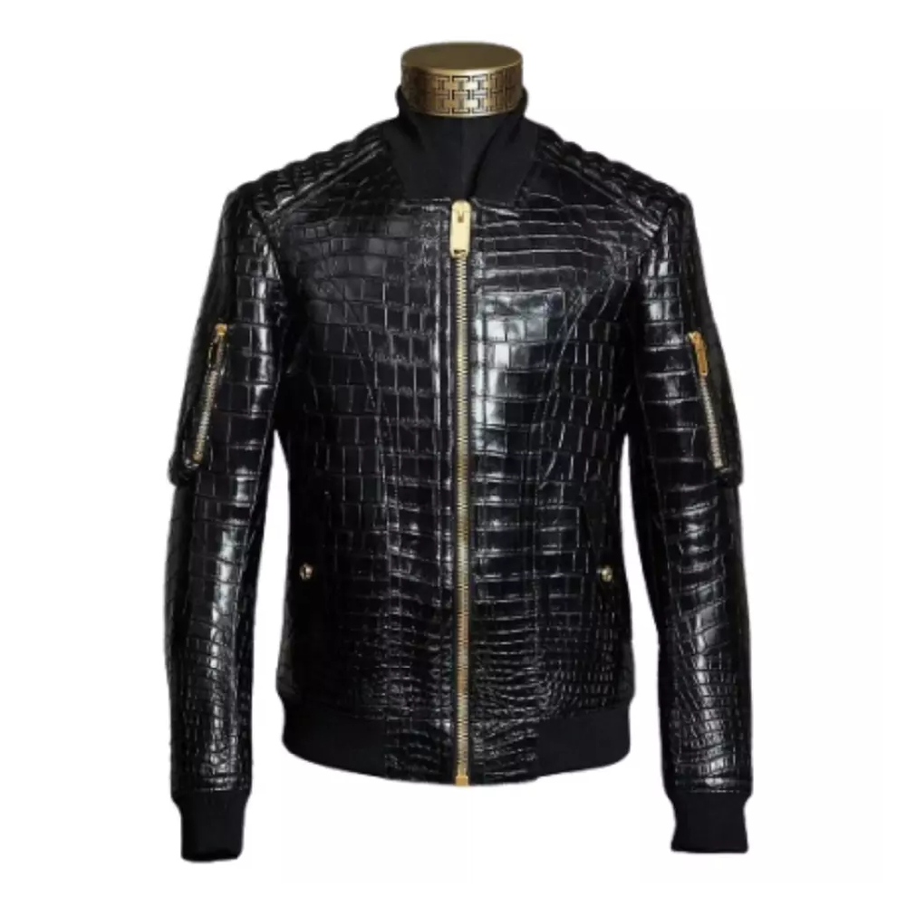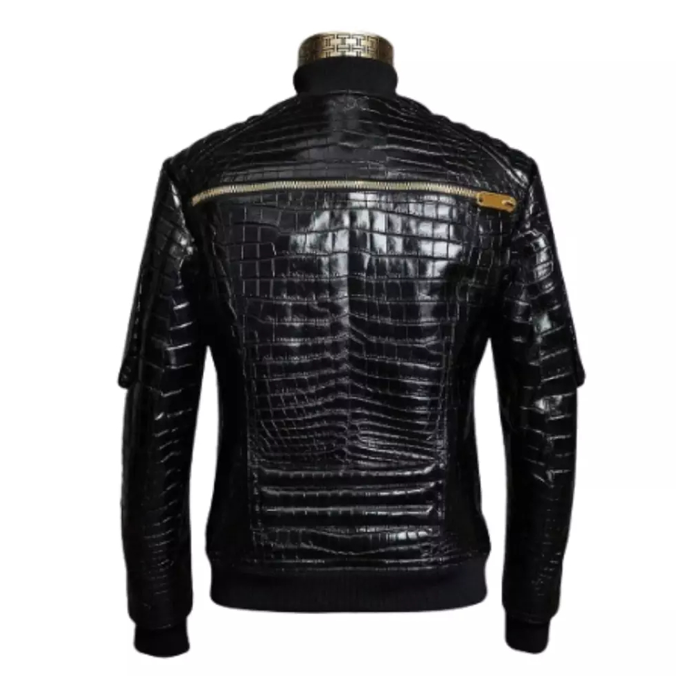 Men’s Black Fashion “The Voice” Crocodile Leather Jacket – Bold & Luxurious Outerwear