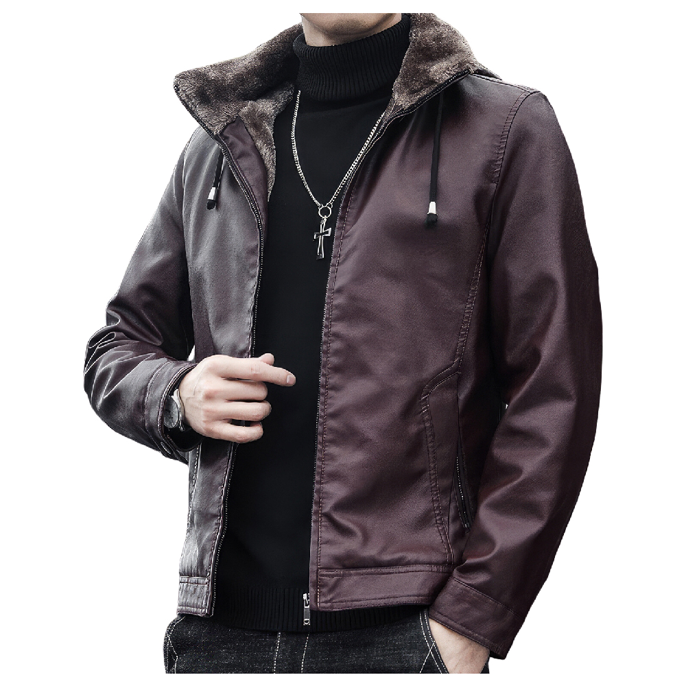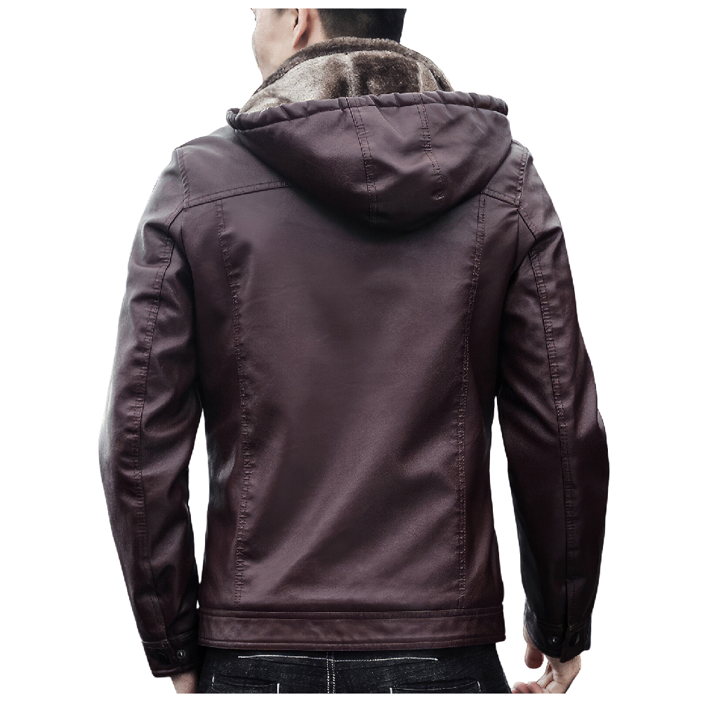 Men’s Fashion Fur Collar Hooded Biker Jacket – Long Sleeve Winter Outerwear