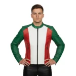 Make a bold statement with the Men’s Biker Leather Jacket – Italy Flag Fashion Stylish. Crafted from premium leather and accented with vibrant green, white, and red details inspired by the Italian flag, this jacket blends classic biker attitude with modern fashion appeal. The structured, moto-inspired silhouette delivers a sharp, masculine fit while offering comfort and durability for everyday wear. Perfect for city outings, rides, or standout street style looks.