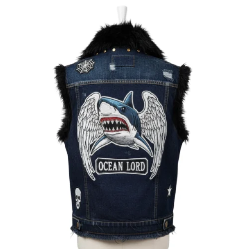 - This vest jacket fuses classic denim with vibrant emerald fur accents, creating a statement piece that elevates your wardrobe