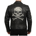 Men’s Black Skull Crossbones Biker Leather Jacket – Genuine Sheepskin