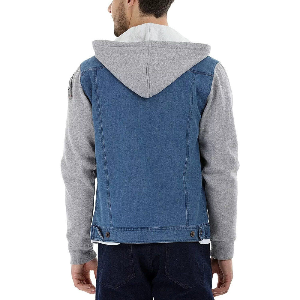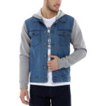 Add a fresh, urban edge to your wardrobe with the Men’s Blue and Grey Denim Hooded Vest Jacket. Designed with a modern two-tone denim finish, this sleeveless vest features a contrasting hood that brings together classic denim style and contemporary streetwear vibes.