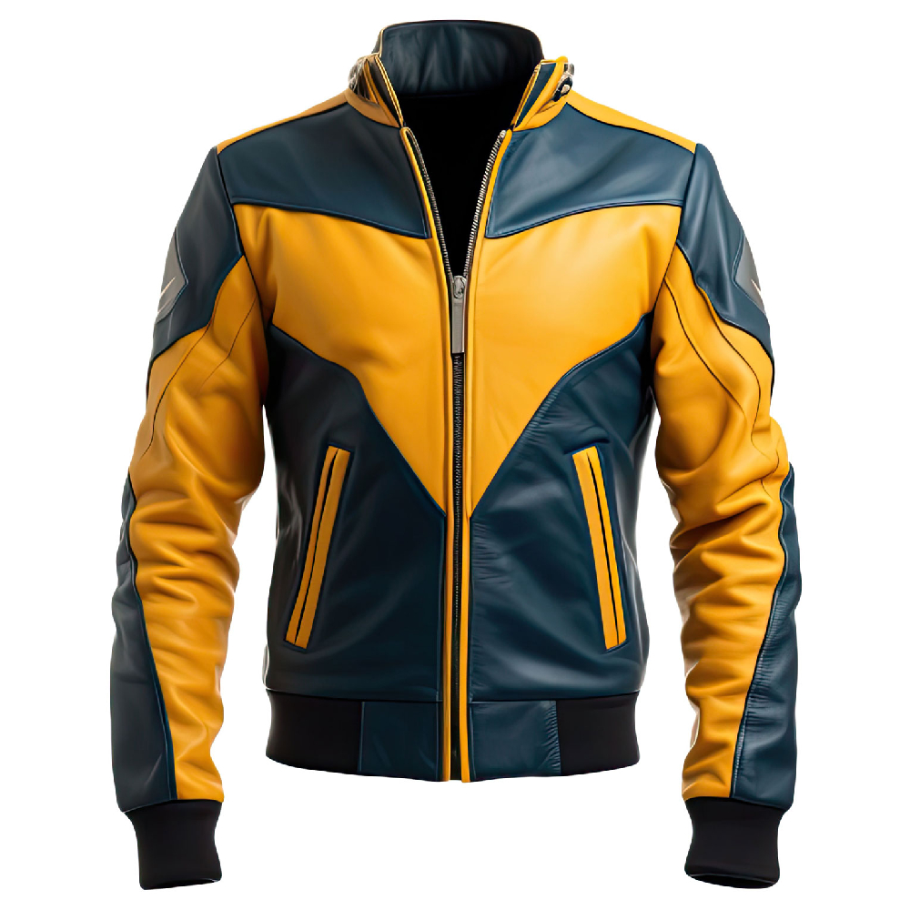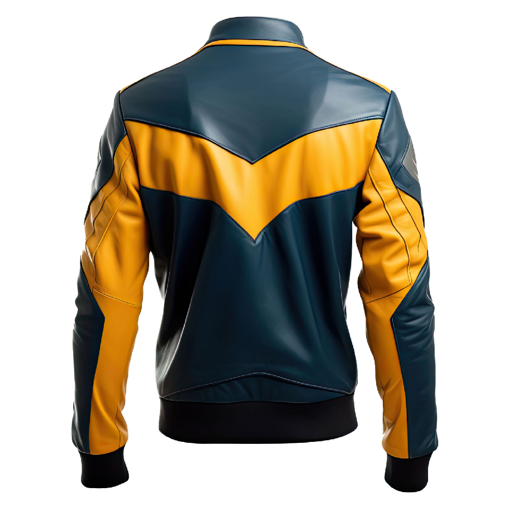 Men’s Blue & Mustard Yellow Biker Leather Jacket – Bold & Trendy