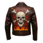 Unleash your daring spirit with the Men’s Brown Flame Skull Biker Sheepskin Genuine Leather Jacket, crafted for riders who crave bold style and rugged attitude. Made from 100% genuine sheepskin leather, this jacket combines exceptional quality with standout detailing. The flame and skull crossbones design gives it a rebellious edge, while the vintage brown finish enhances its classic biker look.