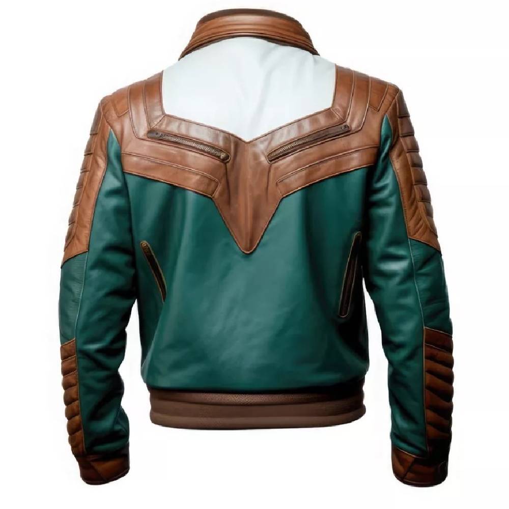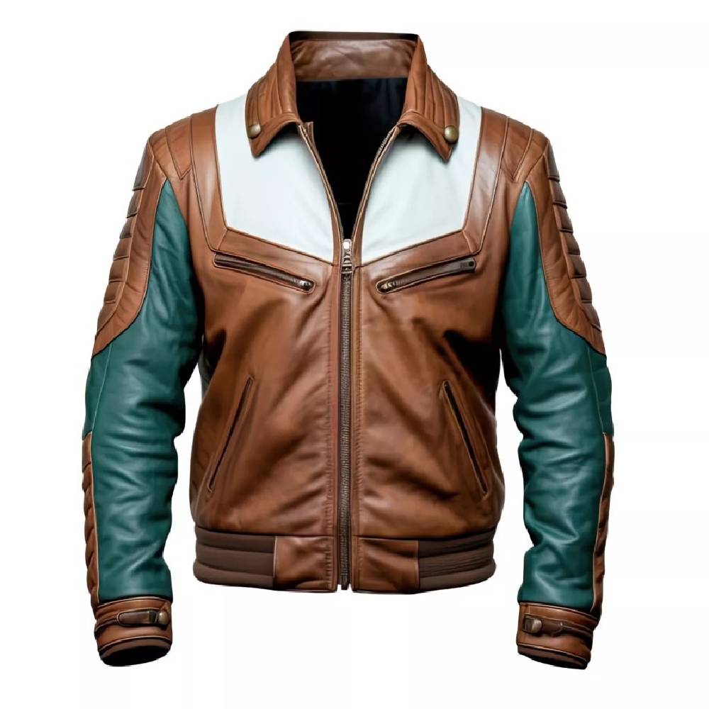 Men’s Brown & Green Genuine Sheepskin Biker Bomber Leather Jacket