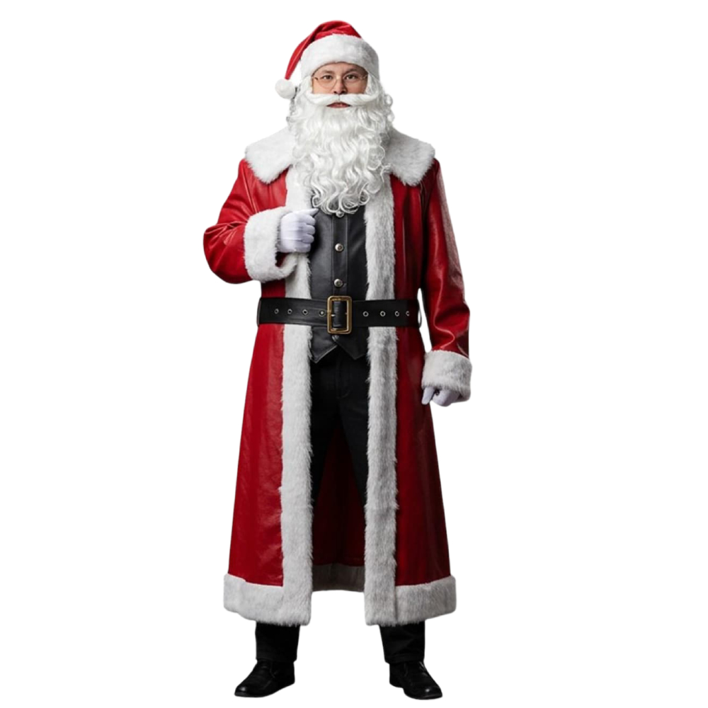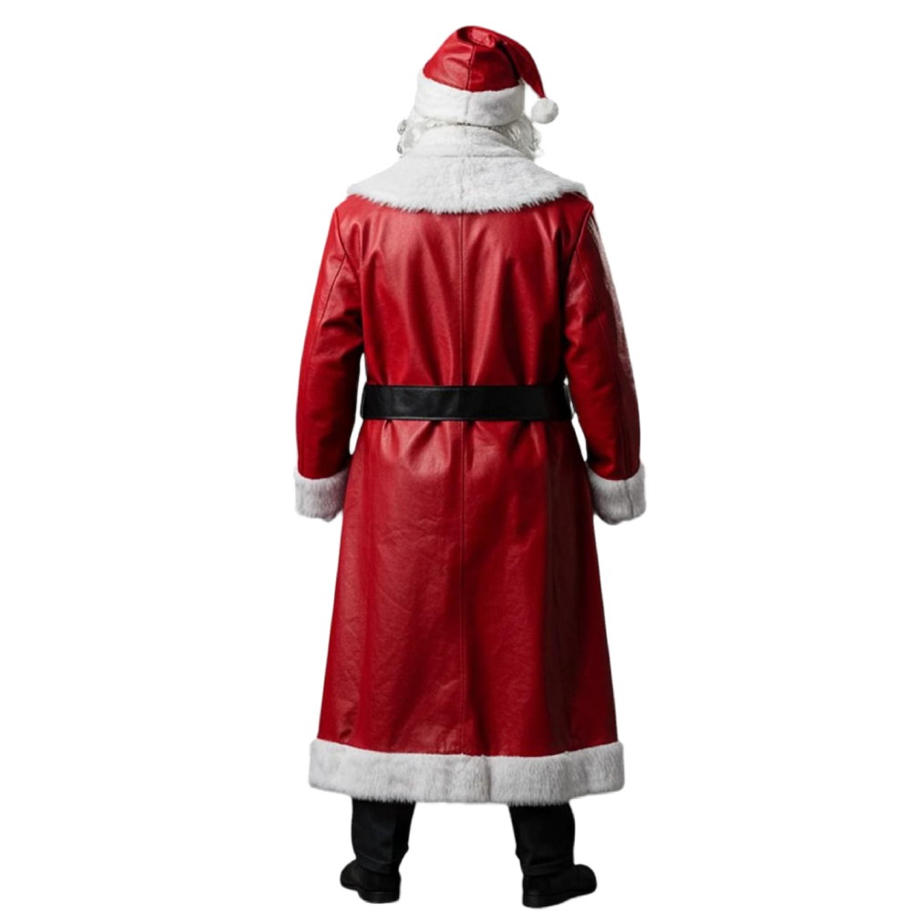 Bring festive cheer wherever you go in this Classic Santa Red Leather Long Coat — a perfect mix of comfort, warmth, and holiday spirit.