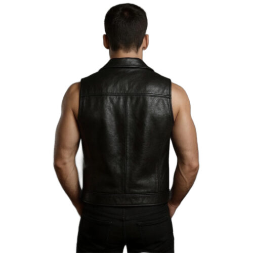Men's Midnight Blue & Black Leather Sleeveless Matrix Trench Vest $355.00 Original price was: $355.00.$266.00Current price is: $266.00.