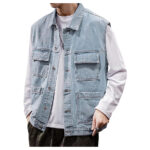 Men’s Denim Vest – Casual Slim Fit Sleeveless Light Blue Jacket