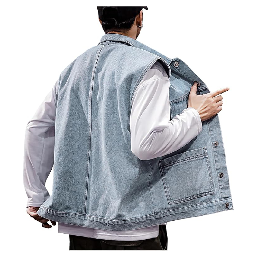 Add a touch of rugged style to your wardrobe with this Men’s Denim Vest in light blue, designed for a slim-fit, modern look. Made from high-quality denim, this sleeveless jacket is a versatile layering piece that complements both casual and edgy outfits. Whether you’re going for a laid-back streetwear style or a rock-inspired aesthetic, this denim vest is a must-have.