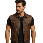 Men’s Distressed Brown Leather Moto Vest – Vintage Road Warrior