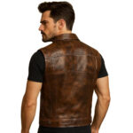 Home ALL MEN'S JACKETS Leather Jacket Men’s Distressed Brown Leather Moto Vest – Vintage Road Warrior