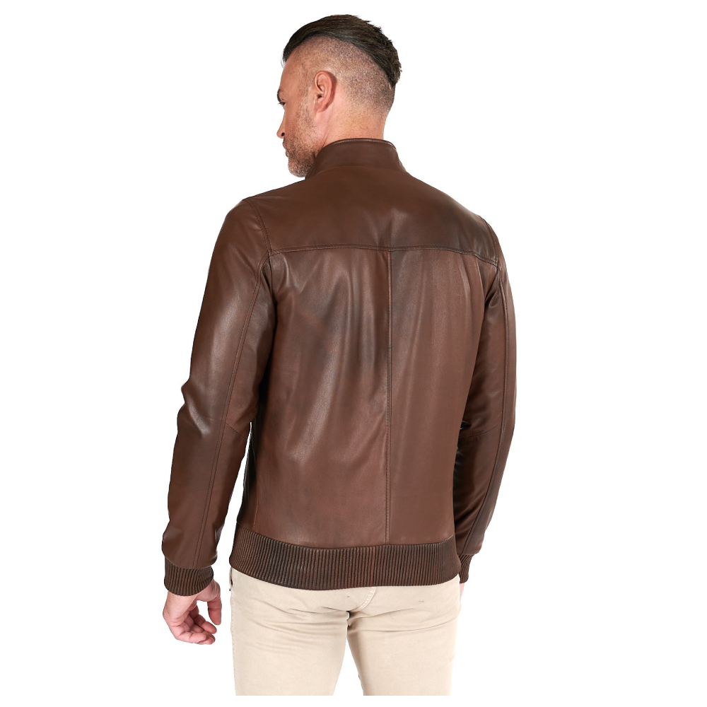 Men’s Fashion Stylish Bomber Genuine Short Leather Jacket In Brown
