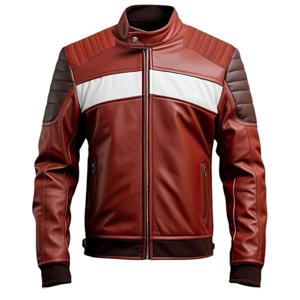 Men’s Brown & White Real Leather Punk Racing Moto Jacket $255.00 Original price was: $255.00.$188.88Current price is: $188.88.