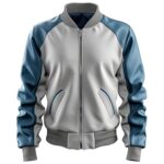 Men’s Grey & Blue Sheepskin Lightweight Stylish Bomber Leather Jacket