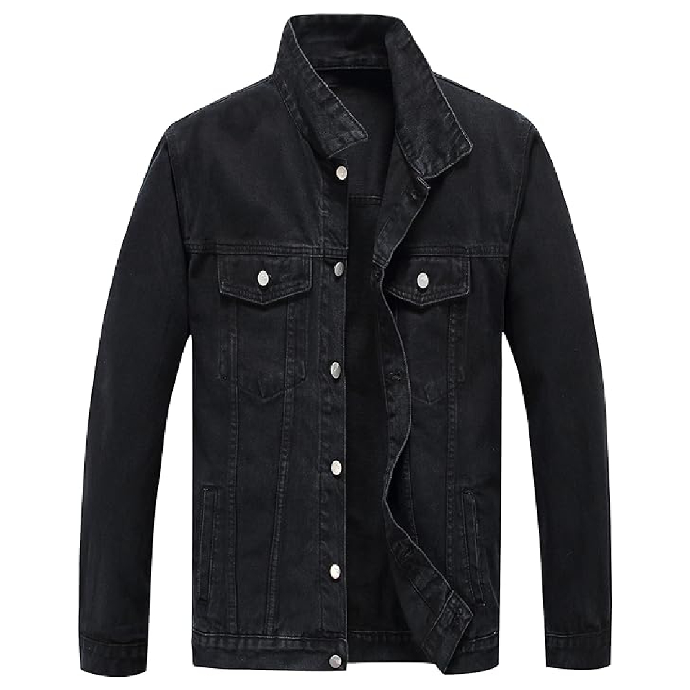 Men’s Black Denim Jacket – Casual Loose Fit Button-Down Trucker