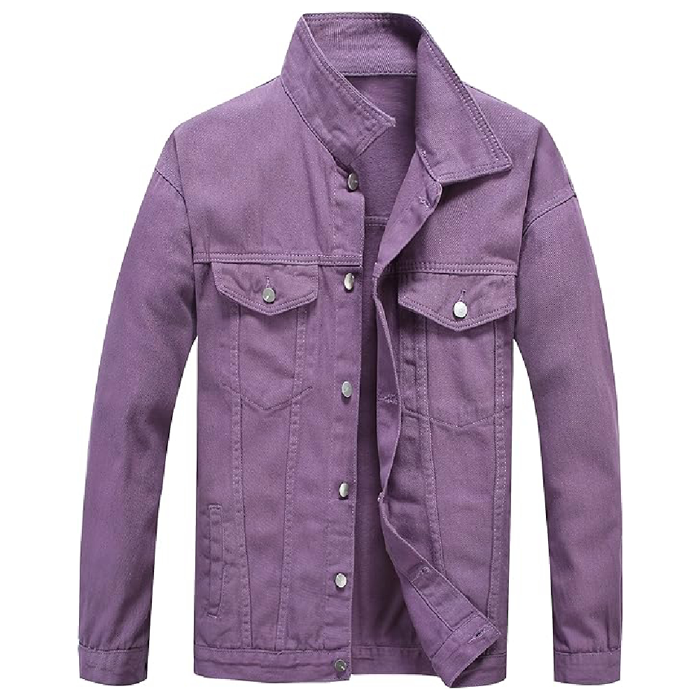 Men’s Purple Denim Jacket – Casual Loose Fit Button-Down Trucker