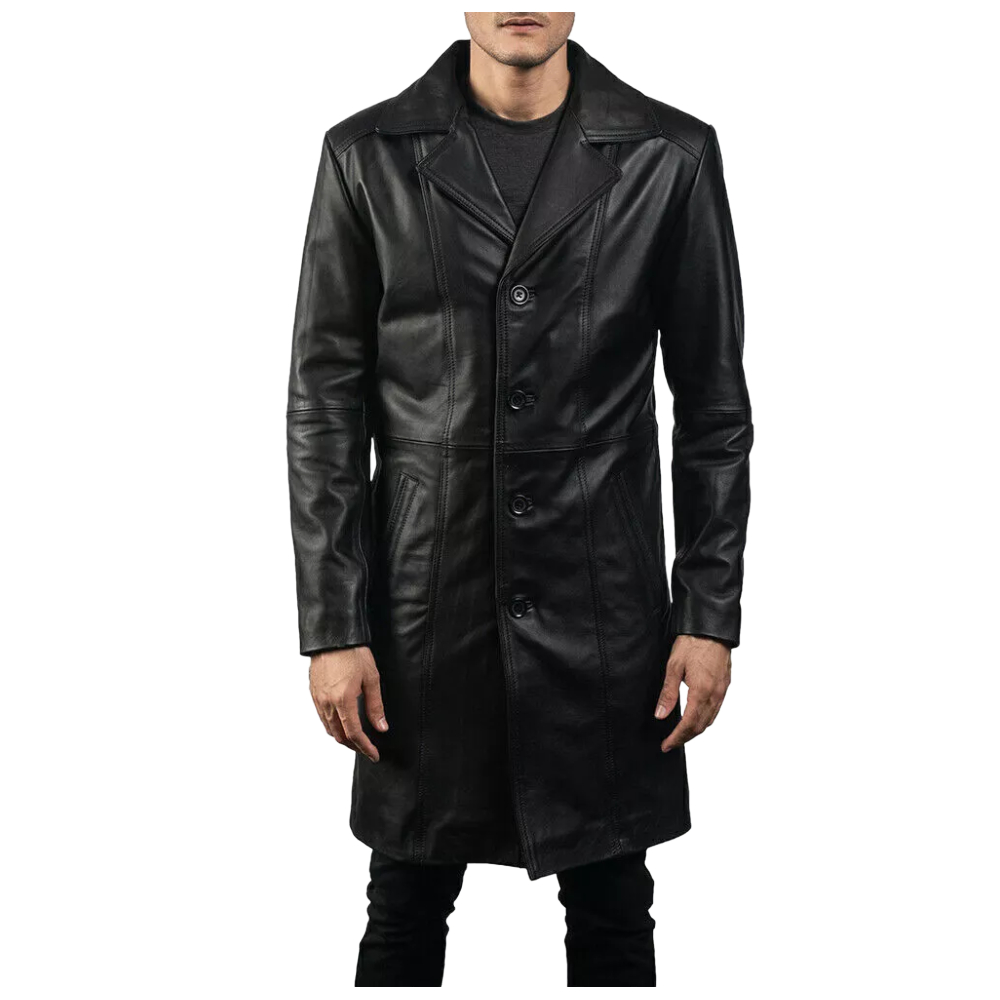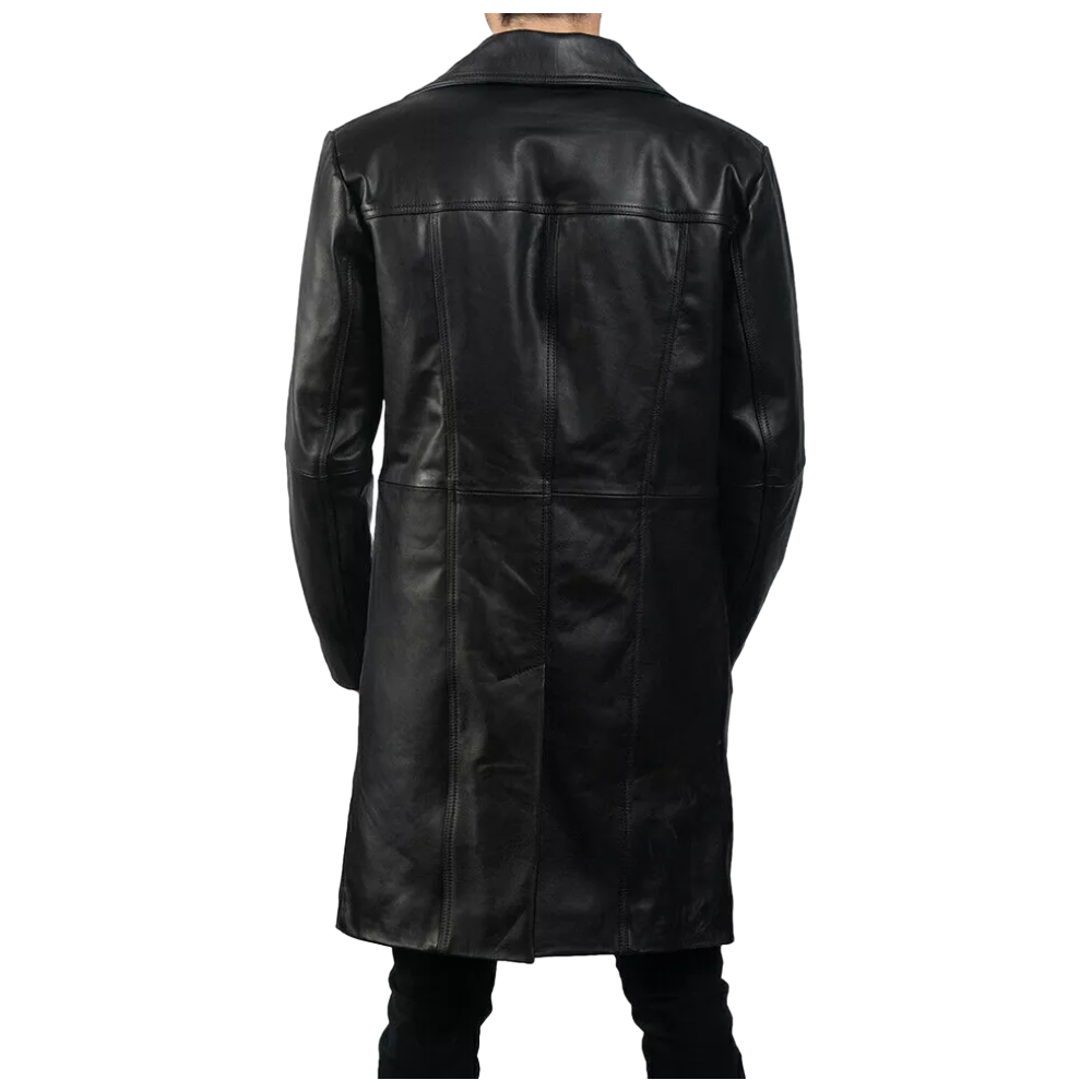 Men’s Leather Trench Coat – Genuine Lambskin Black Long Biker Jacket Coat