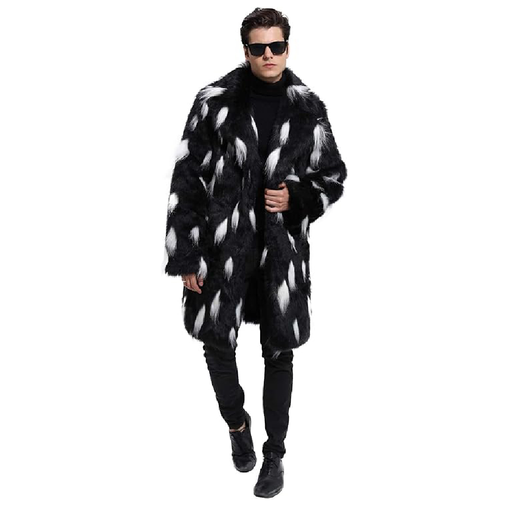 Men’s Long Faux Fur Coat – Fluffy Fur Collar Luxury Winter Overcoat