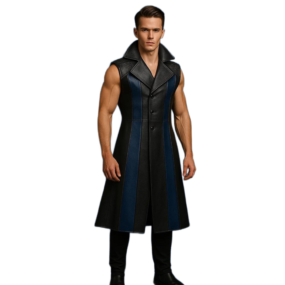 Home ALL MEN'S JACKETS Leather Coat Men’s Midnight Blue & Black Leather Sleeveless Matrix Trench Vest