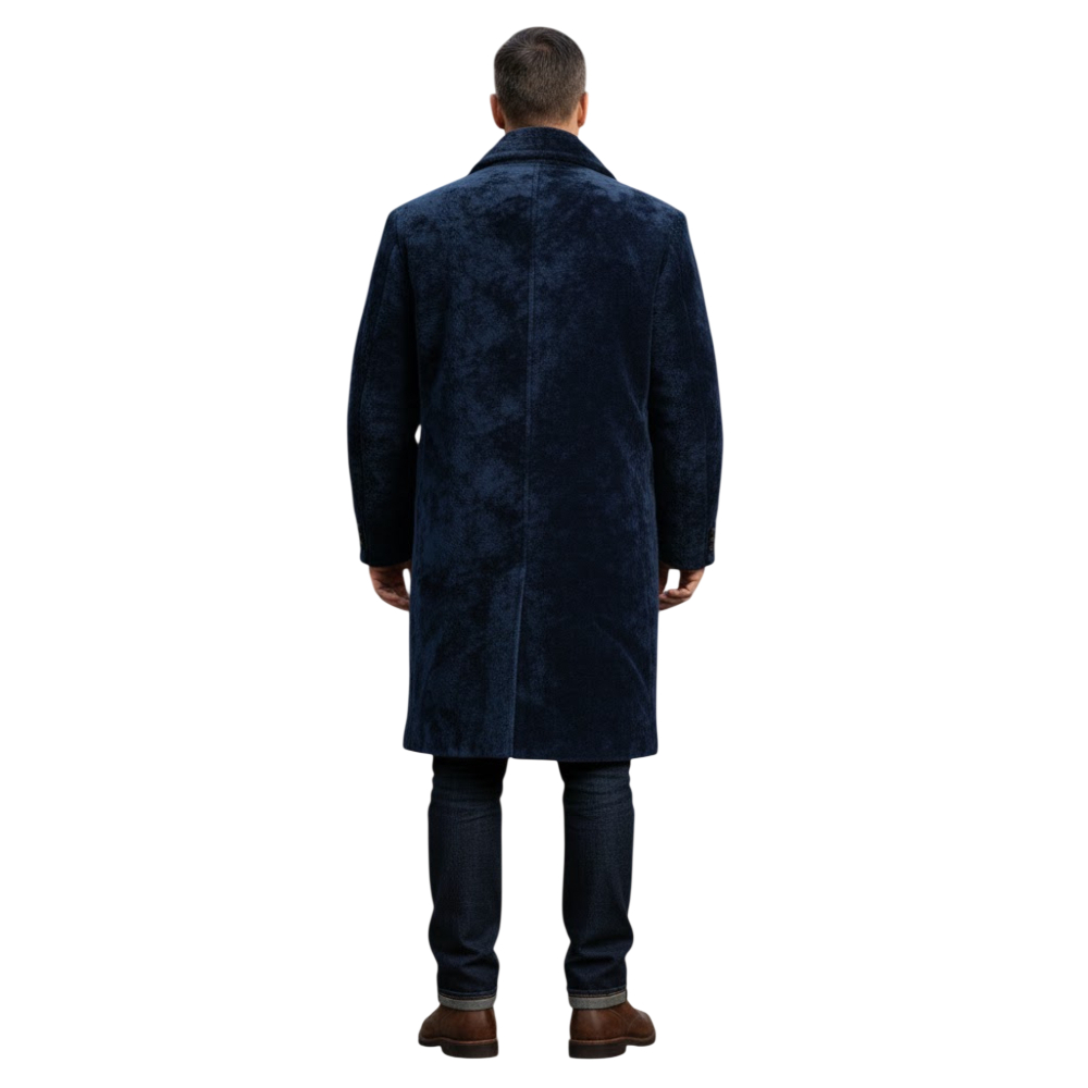 Refined, elegant, and effortlessly stylish, the Men’s Navy Blue Velvet Chenille Classic Long Coat is designed for men who appreciate timeless fashion with a modern touch. Crafted from rich velvet chenille fabric, this coat offers a luxuriously soft texture with a subtle sheen that elevates any winter outfit.