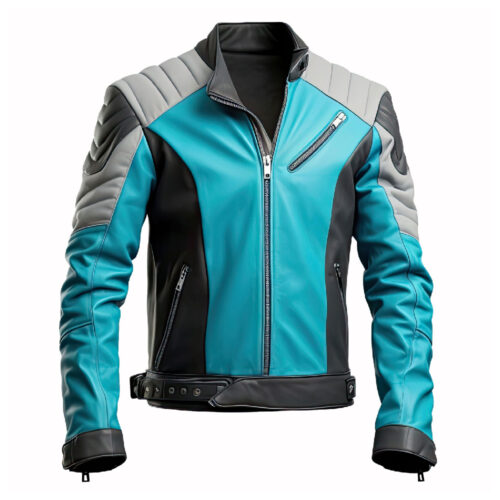Men’s Turquoise Blue & Black Sheepskin Slim-Fit Quilted Biker Leather Jacket $255.00 Original price was: $255.00.$188.88Current price is: $188.88.