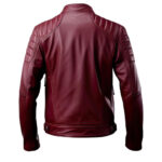 Men’s Real Lambskin Stand Collar Zip-Up Biker Maroon Leather Jacket