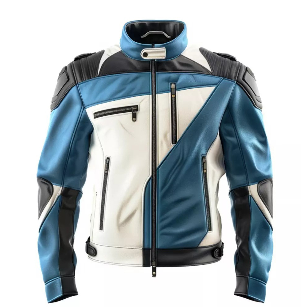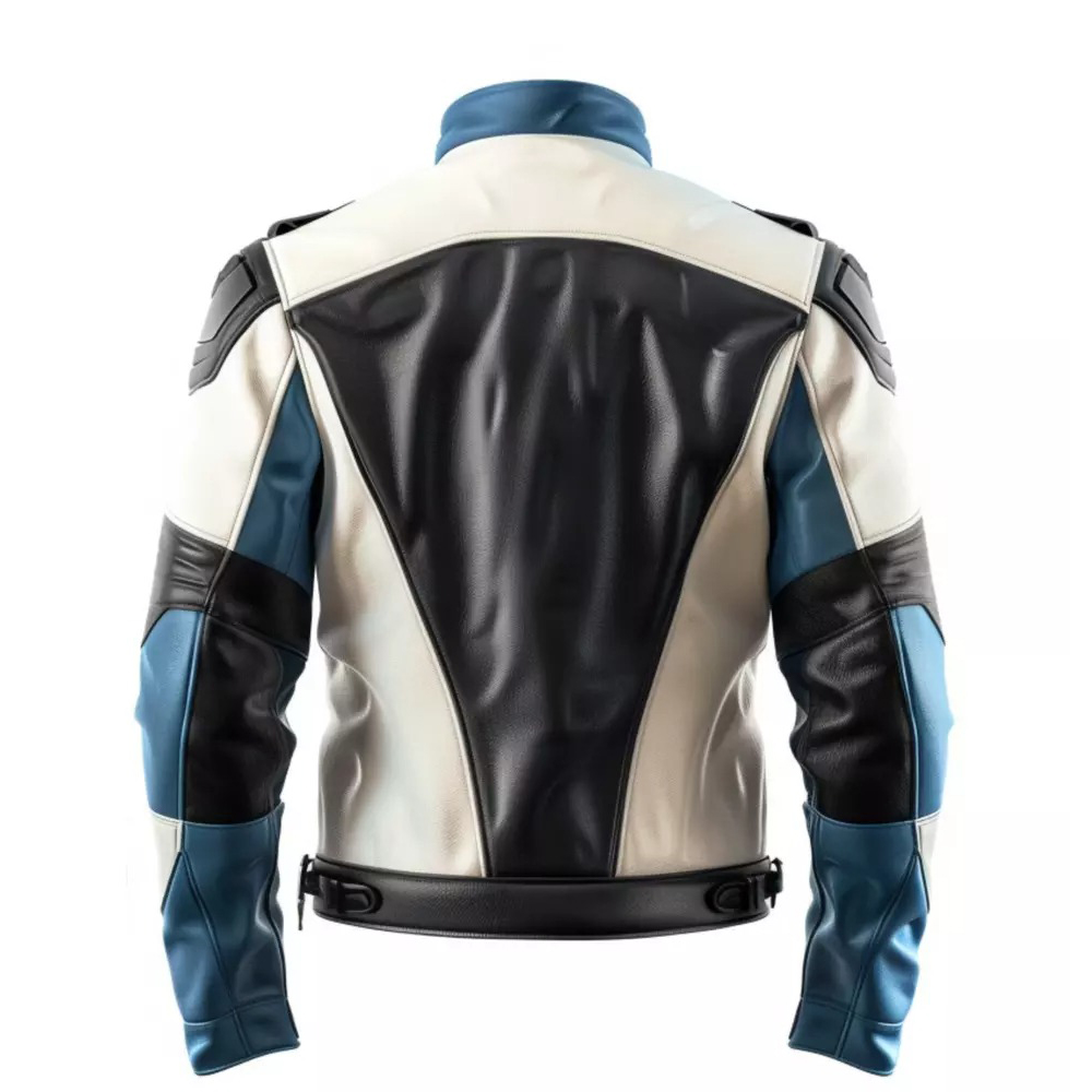 Men’s Sand Grey & Royal Blue Genuine Sheepskin Biker Leather Jacket