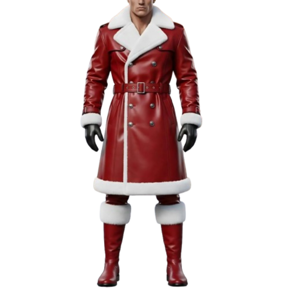 Bring holiday magic wherever you go with this Red Santa Leather Trench Coat — a statement piece that embodies festive spirit, warmth, and timeless style.