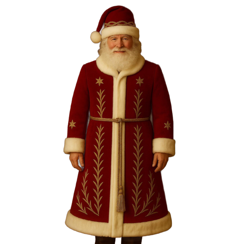 ✔ Design: Classic long Santa-style coat with a festive royal touch