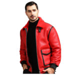 Make a statement with the Men’s Shearling Aviator Leather Moto Jacket, a perfect fusion of classic aviator style and modern biker edge. Designed for warmth, durability, and fashion, this bold red leather jacket is lined with luxurious shearling, ensuring ultimate comfort and insulation. Whether you’re hitting the road or styling up your winter wardrobe, this jacket offers the perfect mix of ruggedness and sophistication.