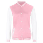 Women’s Baseball Varsity Casual Button-Down Letterman Pink Bomber Jacket