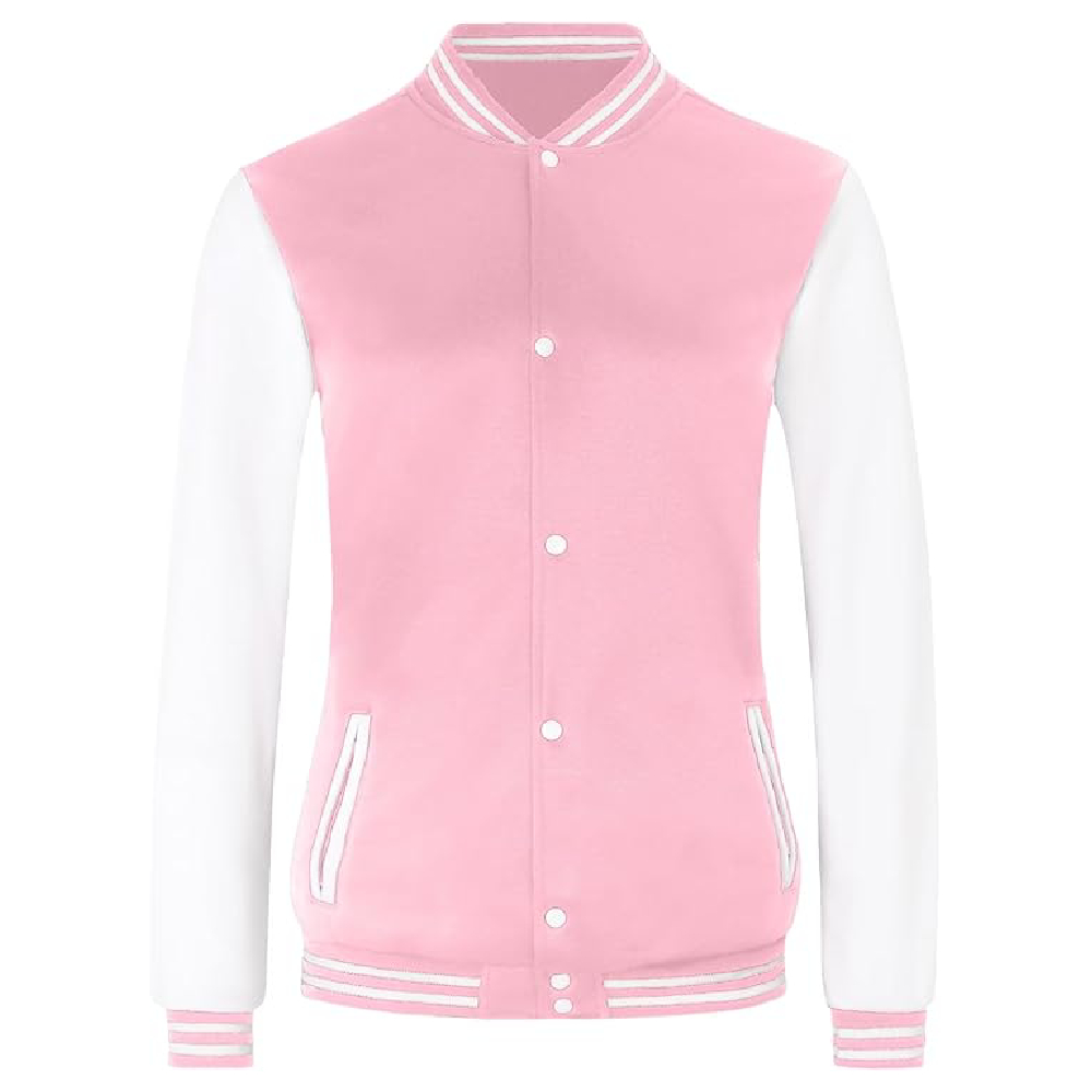 Home ALL WOMEN'S JACKETS Bomber Jacket Women’s Baseball Varsity Casual Button-Down Letterman Pink Bomber Jacket